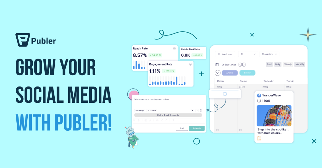 Publer adalah platform penjadwalan media sosial yang cukup lengkap dengan harga yang sangat bersaing. Tool ini mendukung berbagai platform, termasuk Facebook, Instagram, Twitter, LinkedIn, Google My Business, Pinterest, YouTube, dan bahkan Telegram.